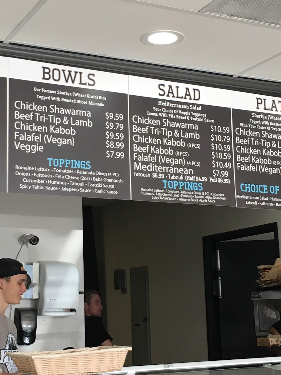 Customers Love to Cater with Us Make your Party THE PARTY! Choice of 2 Proteins, 2 Signature Dips, Pita bread or Chips, 2 Sauces and Our signature Shariya Rice Topped with Roasted Almonds, Mediterranean Salad with Feta cheese and Balsamic Vinaigr...